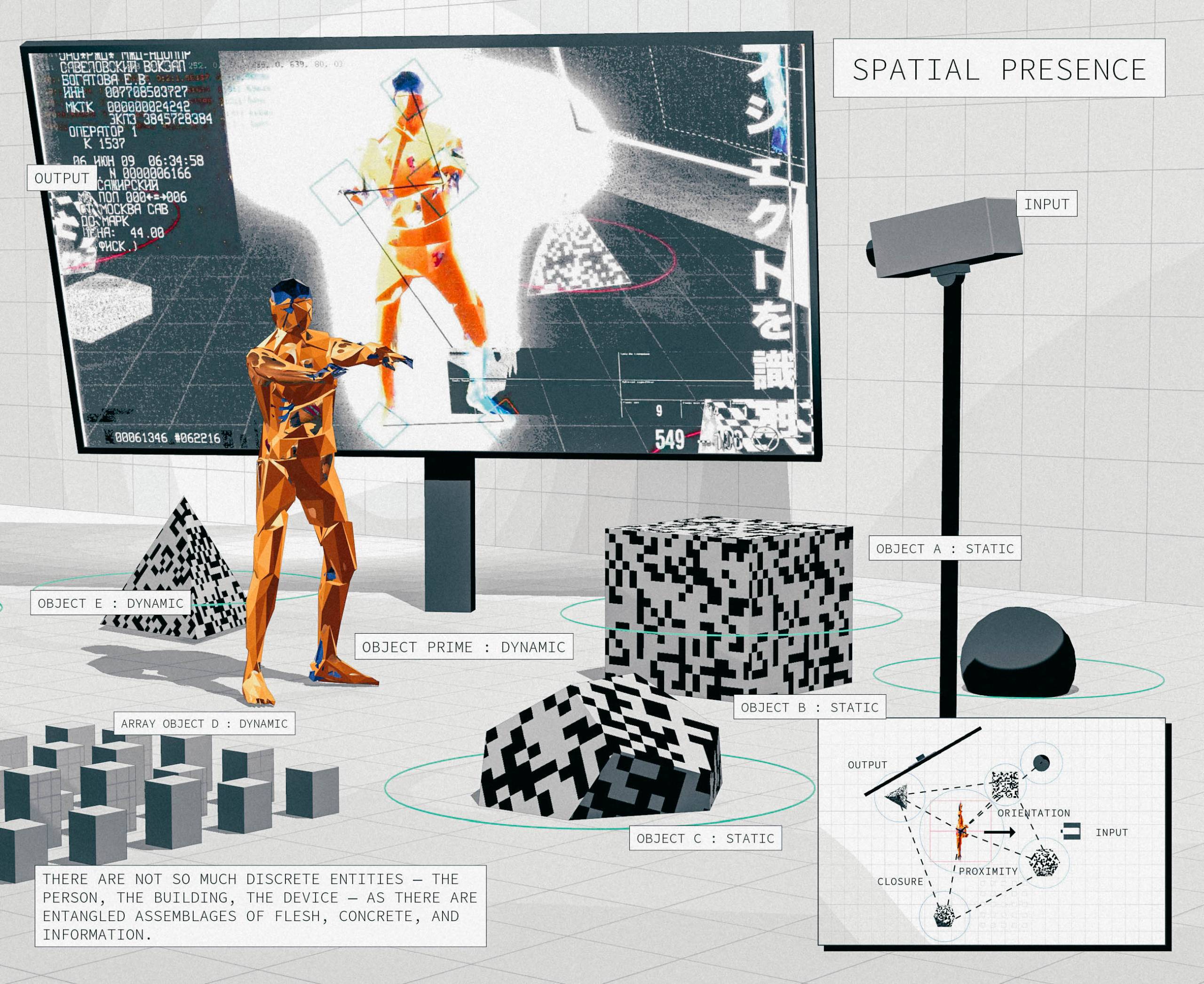 Augmented Reality is primarily perceived as a visual experience, a layer of information on top of the world through the subjective lens of the viewer. The physical reality is full of latent potentialities. Multiple bodies occupying a physical space exist relative to each other and constantly in flux. The primary goal of this exercise is to create a conceptual sandbox to explore this physical relationality as a way to interface and augment the reality.