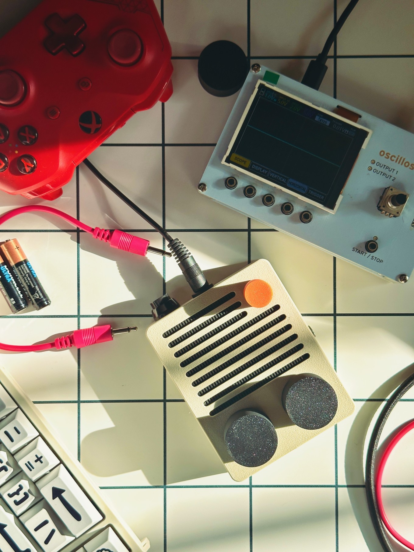 Art Object, Sound machine, Prototype N556 Timer IC stepped toned circuit, speaker, line out, custom case/enclosure, 3D printed PLA 100mm x 80mm x 30mm Metadata 33 - ll-05 2025-10-02 [ art object ] Metadata 33 - ll-05 2025-10-02 [ art object ]